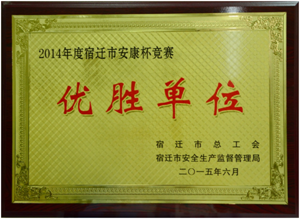 近日,公司獲評宿遷市總工會(huì)和宿遷市安全生產(chǎn)監(jiān)督管理局聯(lián)合頒發(fā)的2014年度宿遷市安康杯競賽優(yōu)勝單位稱號。獲此殊榮的本次表彰全市共有18家單位,開發(fā)公司也是園區(qū)唯一一家獲得優(yōu)勝單位稱號。
