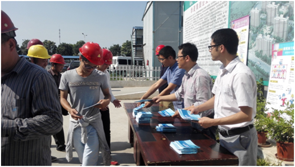 工作人員向參加交底活動的工人發(fā)放安全生產宣傳手冊,并向工人展示了精心制作的安全生產掛圖。夢家園施工人員踴躍參加,活動現(xiàn)場反應熱烈,本次活動起到良好的宣傳教育作用。