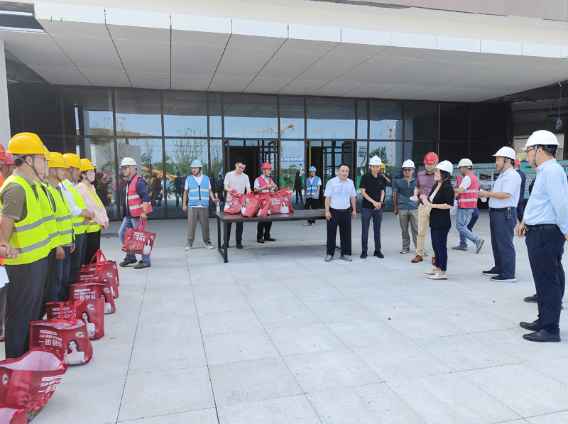 夏日炎炎,廣大勞動者堅守一線,揮灑汗水,保障項目建設(shè)有序進行。8月2日上午,城發(fā)公司董事長、總經(jīng)理李蘭霞帶隊赴項目現(xiàn)場看望一線工作人員,為奮戰(zhàn)在高溫一線的勞動者們送去防暑降溫慰問品,把公司關(guān)懷送達一線工人心坎上。