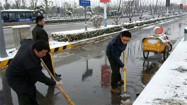 園區(qū)城管部門和建發(fā)公司迅速動(dòng)員部署,啟動(dòng)掃雪應(yīng)急預(yù)案,建發(fā)員工和環(huán)衛(wèi)工人不畏嚴(yán)寒,早晨六點(diǎn)鐘就走上街頭路口,揮舞著鐵鍬和笤帚,一點(diǎn)點(diǎn)地將積雪清掃干凈,經(jīng)過三小時(shí)的掃雪作業(yè),園區(qū)青海湖西路、玄武湖西路、陽明山大道等主干道已基本完成清雪工作,切實(shí)保障了市民出行。