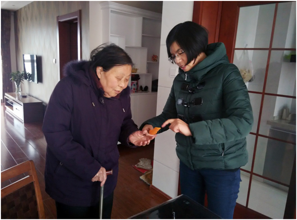 “年紀(jì)大了,出門總會(huì)迷路找不到家”,社區(qū)老阿姨不經(jīng)意的一句話卻提醒了社工。從3月5日起,社工便陸續(xù)走進(jìn)小區(qū),給社區(qū)12位70歲以上的老人送上“黃手環(huán)”。