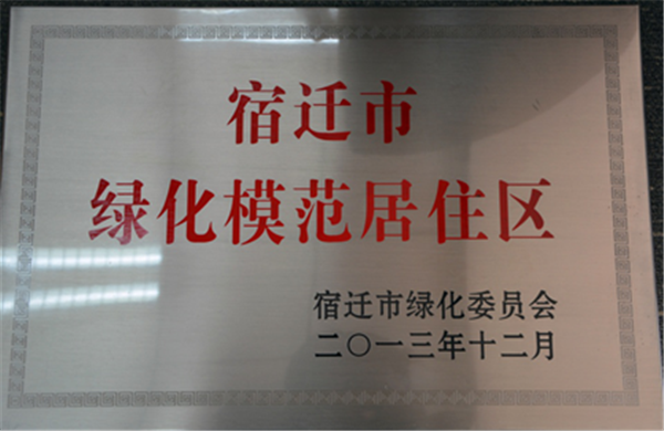近日,園區(qū)公舍被市綠化委員會授予“宿遷市綠化模范居住區(qū)”稱號。