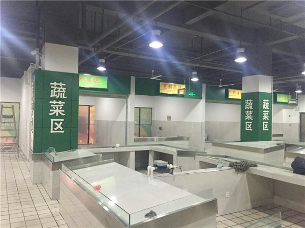 該工程位于明日鄰里中心地下一層,建筑面積700平米,工程造價60萬元。歷經(jīng)兩個月施工建設,菜場內(nèi)設鹵菜、蔬菜、水果、生肉、水產(chǎn)、面加工等各類攤位共計20個,菜場開放運營后,進一步滿足周邊居民采購瓜果、蔬菜等生活必需品的需求。
