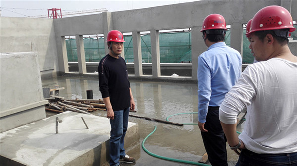 在檢查過程中,根據(jù)開發(fā)公司安全檢查的相關(guān)要求,劉建華指出夢(mèng)家園先期要進(jìn)行屋面蓄水工作,其中防水卷材存在使用壽命問題和屋面混凝土自防水的可靠性至關(guān)重要。針對(duì)屋面蓄水會(huì)暴露屋面防水薄弱點(diǎn),后期進(jìn)一步加強(qiáng)防水施工過程中的關(guān)鍵環(huán)節(jié),確保屋面不滲漏。