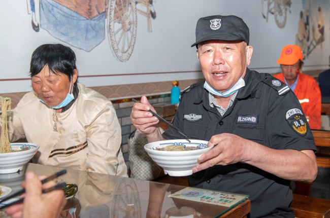一碗“國慶面”,一份愛國情。當(dāng)一碗碗熱氣騰騰、香氣撲鼻的面條送到環(huán)衛(wèi)工人、快遞小哥等堅(jiān)守在一線崗位上的工作人員手中,大家接過面條,享用著寓意美好的“國慶面”,每個人的臉上都洋溢著幸福和快樂的笑容。大家用最樸素最平常的食物,表達(dá)了對祖國母親生日快樂的真摯情感。